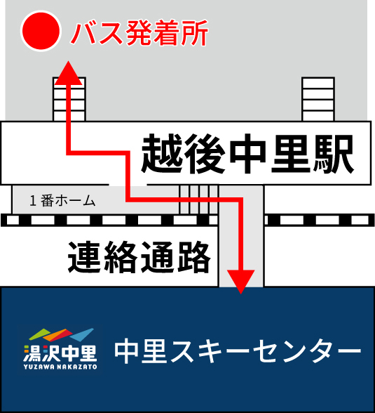 越後中里駅と中里スキーセンターはホーム連絡通路でつながっています。(料金などはかからず、自由に行き来できます)