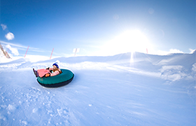 スノーエスカレーターを使ってらくらく、そり遊び、やスキー、ボードの練習ができます。キッズのスノーデビューに最適です!